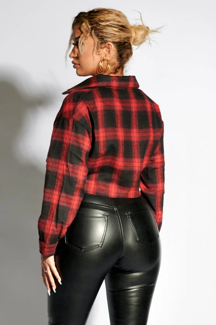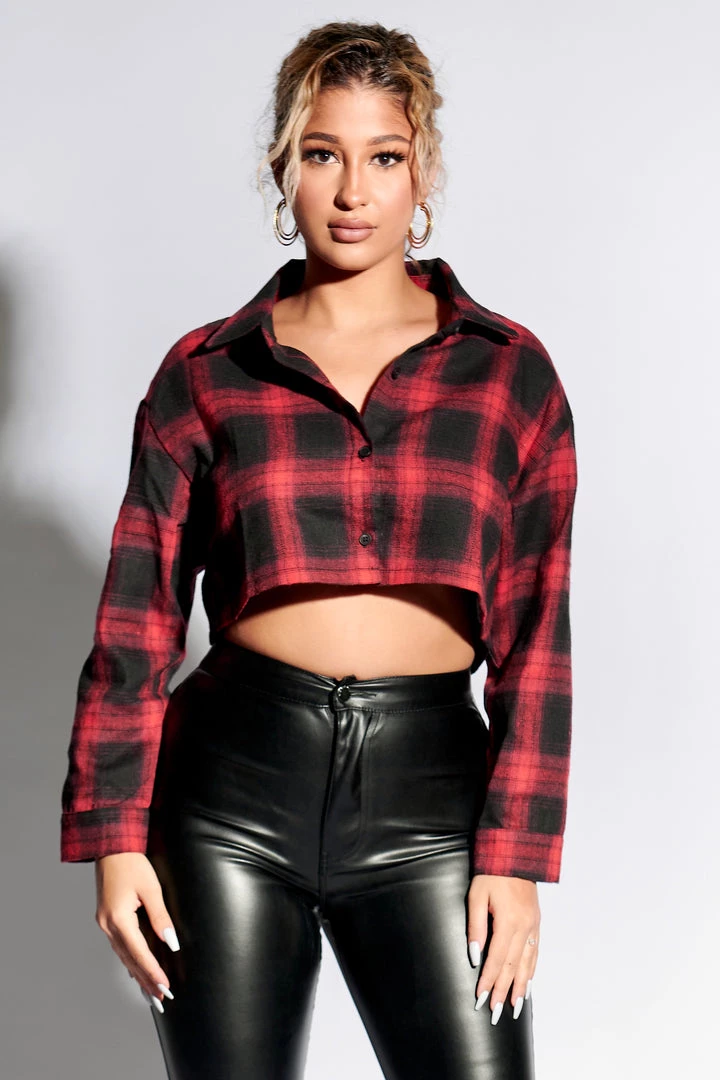 Plaid cropped collar top.