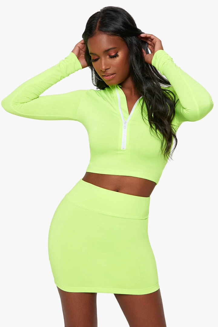 Two piece neon matching set featuring front zip up.
