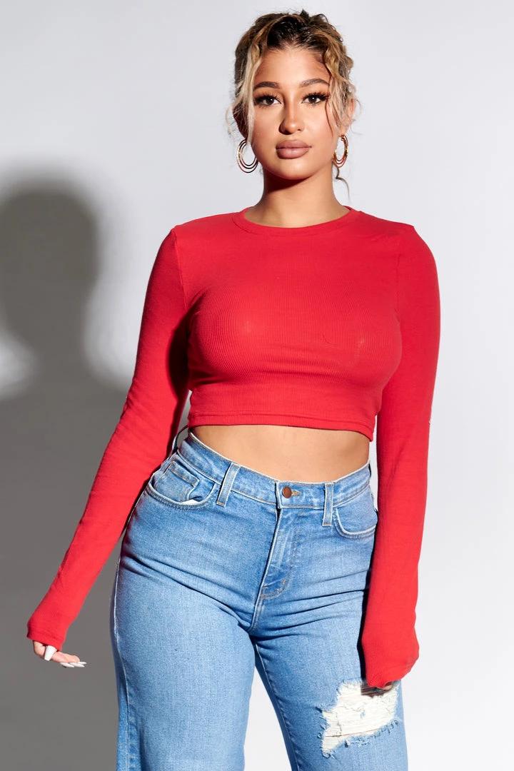 Ribbed long sleeve crop top.