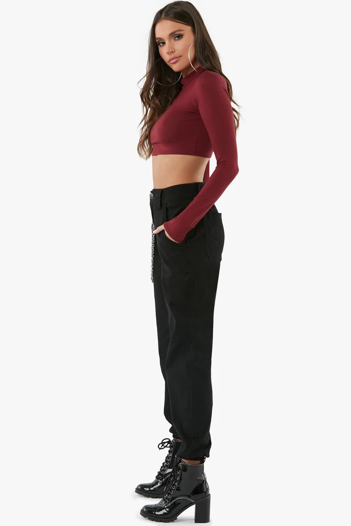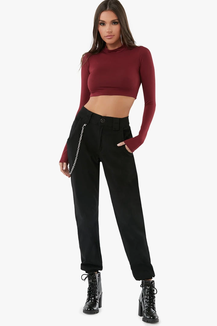 high rise pants featuring side chain details.