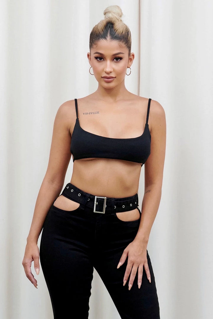 Ribbed bralette with strappy back detail.