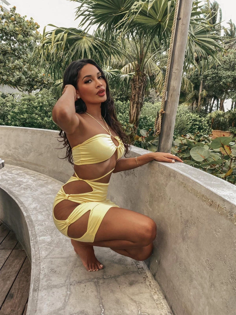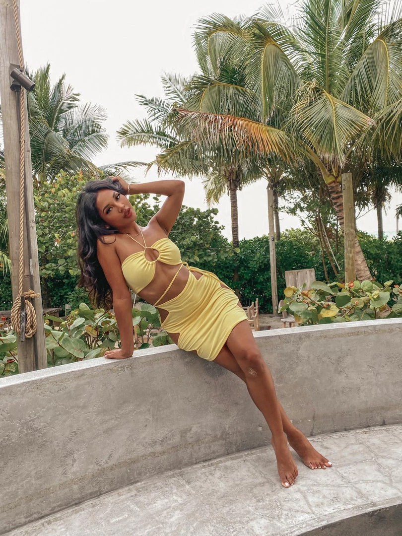 Two-piece skirt set with cut out and tie details.