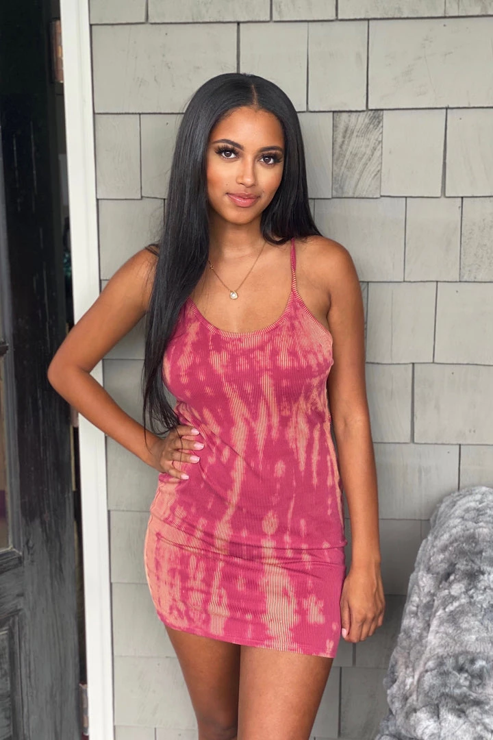 Tie dye mini dress featuring a sexy criss-cross back.