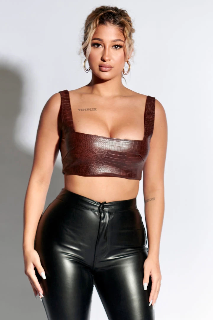 Leather corset top with croc finish.