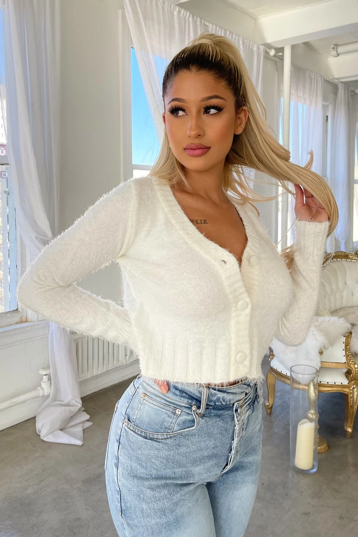 Cozy long sleeve button up sweater.