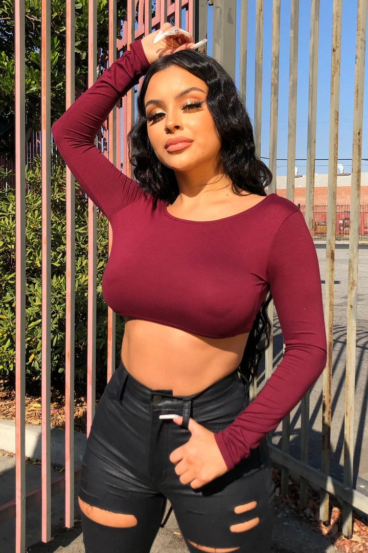 Long sleeve crop top with tie back