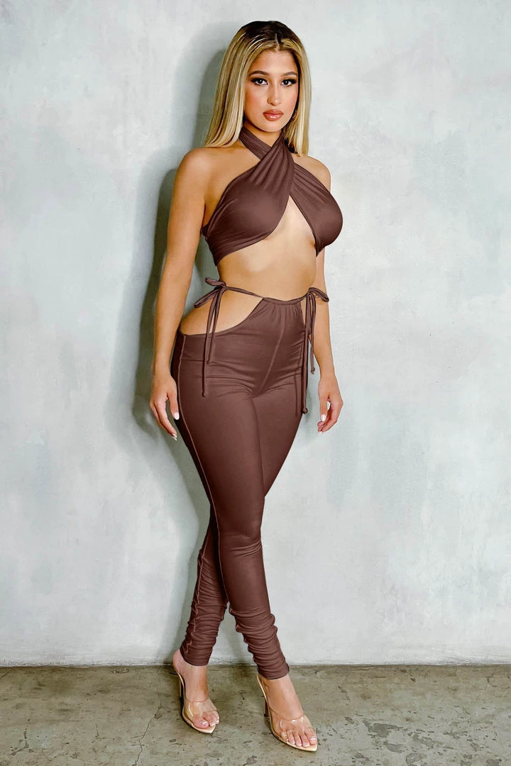 Tie twist top and cut out pants set.